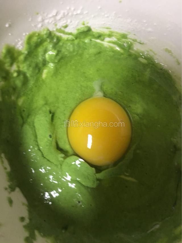 5.菠菜汁加入适量的面粉和一个鸡蛋