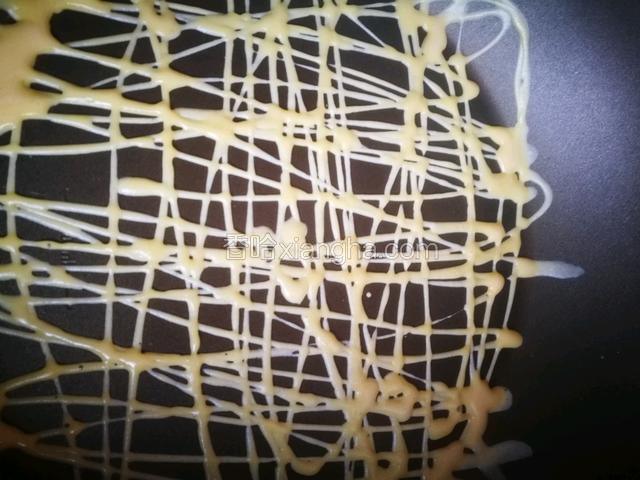 5.把面糊挤在平底锅上。