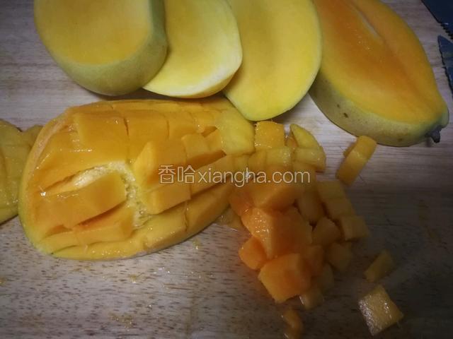 13.留100克左右切得漂亮的芒果丁,装裱蛋糕面用。