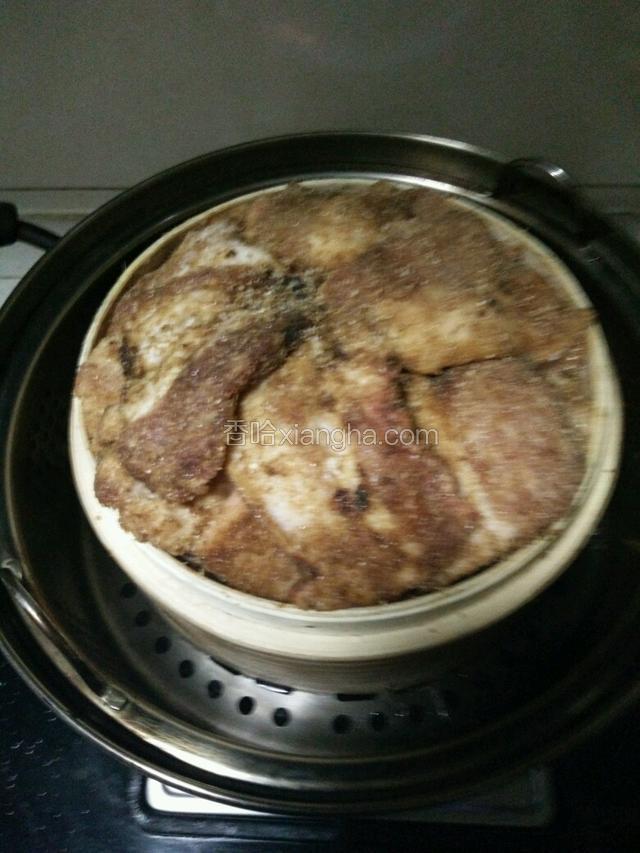 2.放入蒸米粉、盐、姜片、酱油、生抽和鸡精拌匀腌渍20分钟。