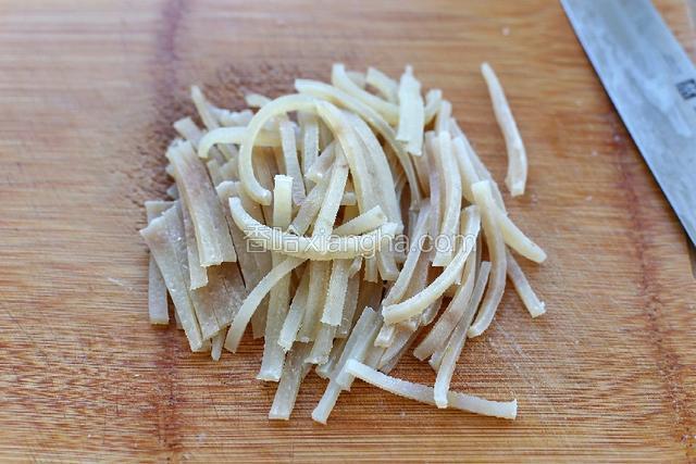 1.将猪肉皮用温水洗净,残留的猪毛可以用小镊子拔掉,放入开水锅中加料酒开盖煮约十分钟